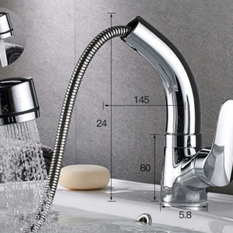 Bathroom Basin Faucet with Pull Down Sprayer Single Handle Mixer Tap Hot and Cold Water Faucet Kitc