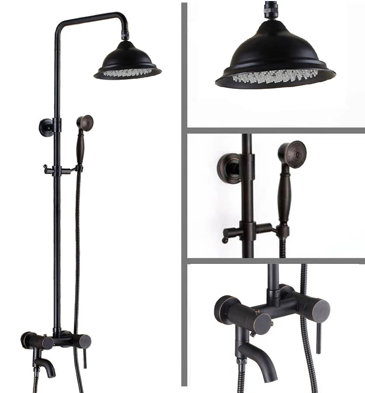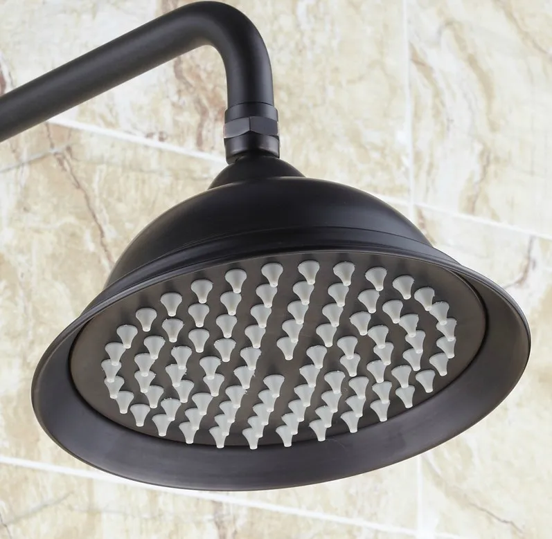 Black Oil Rubbed Brass Single Handle Bathroom 8.2 Inch Round Rain Shower Faucet Set Bath Tub Mixer
