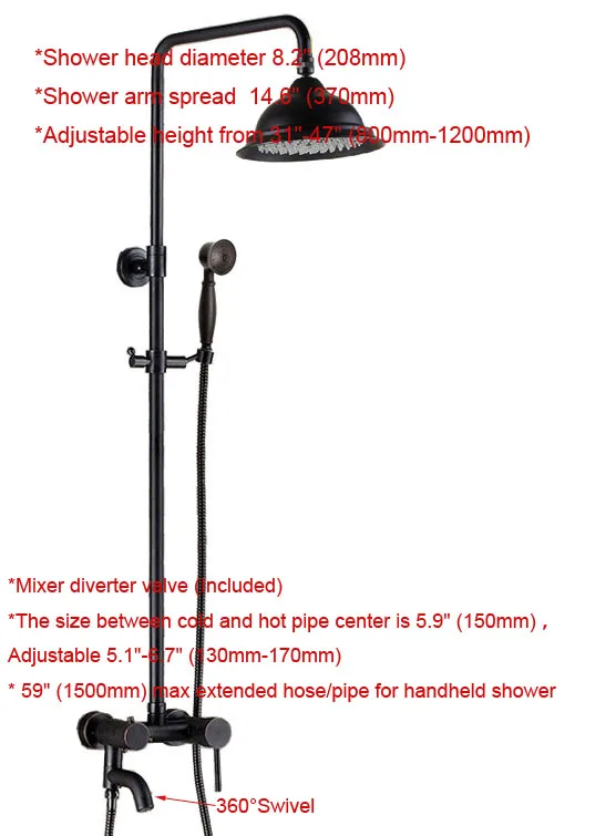 HIGH QUALITY Black Oil Rubbed Brass Single Handle Bathroom 8.2 Inch Round Rain Shower Faucet Set Bath Tub Mixer