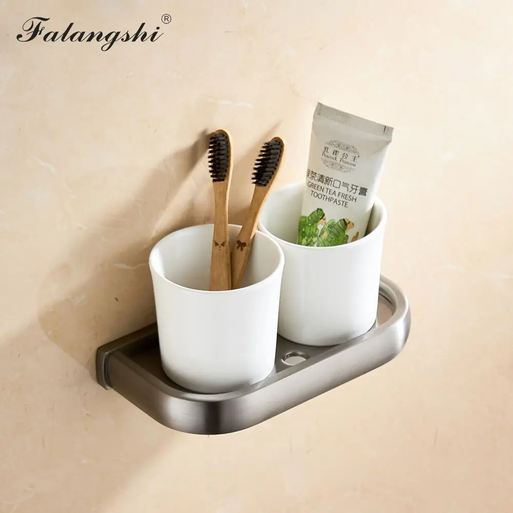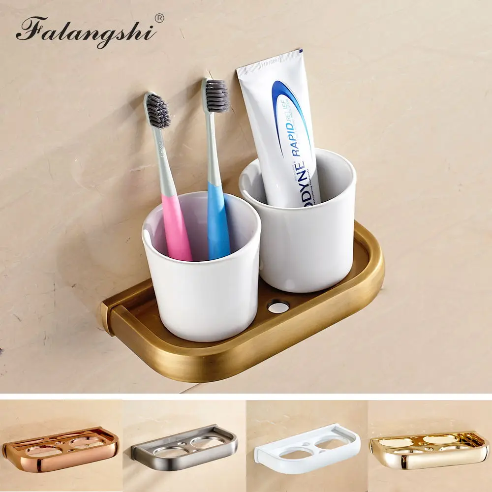 Copper Brass Cup Tumbler Holders Bathroom Accessories Double Ceramic Cup Holders Wall Mounted Tooth