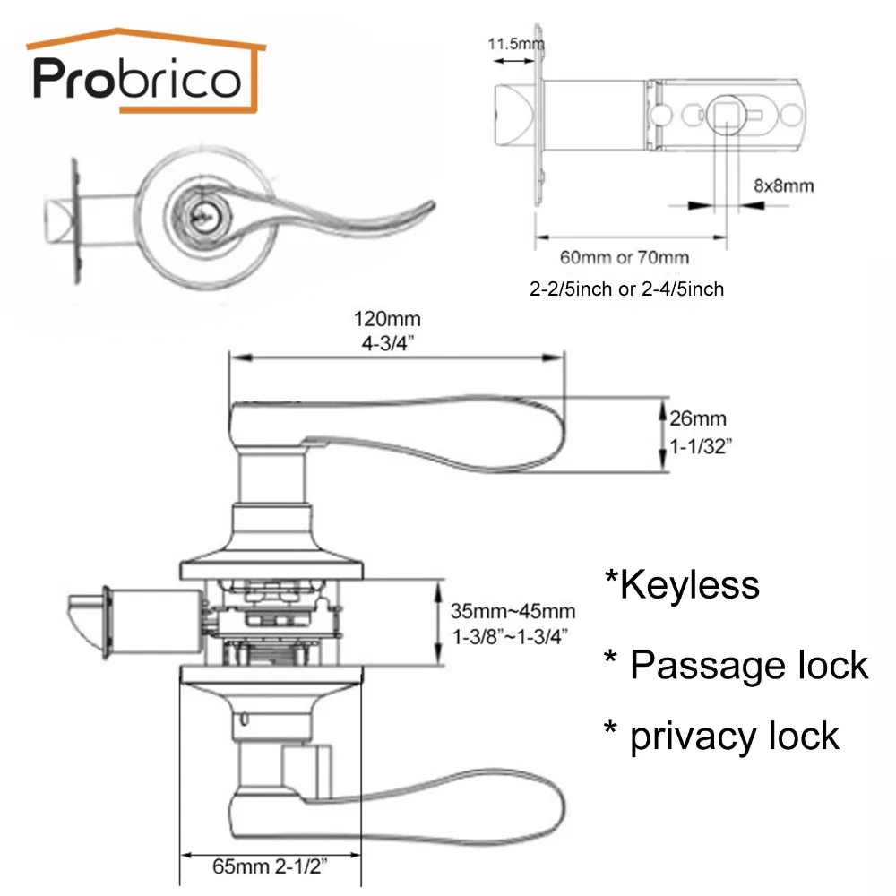 Probrico Interior Door Handle front back door lever Keyless Privacy Lock Stainless Steel Door handl