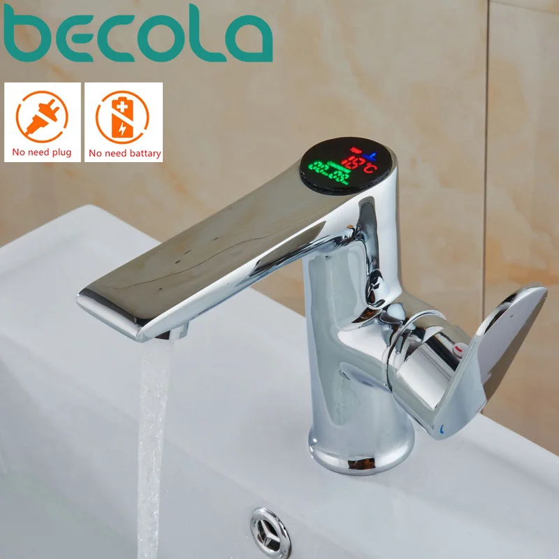 BEST QUALITY becola LED Intelligence Temperature Digital Display Faucet Bathroom Solid brass chrome basin tap Co