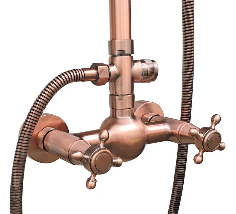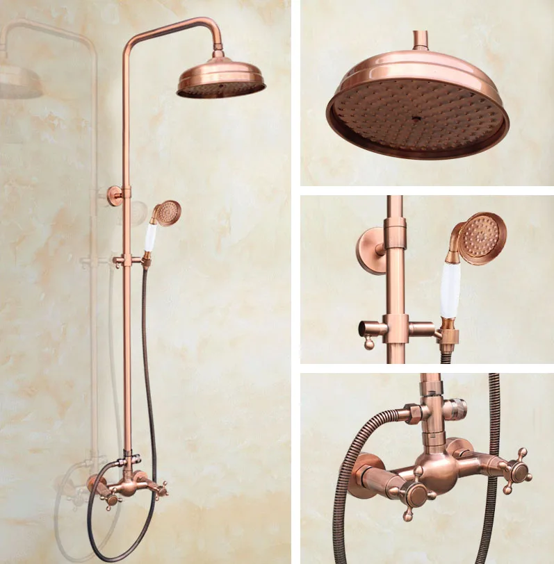 BEST SELLER Antique Red Copper Brass Dual Cross Handles Bathroom 8" Round Rain Shower Head Faucet Set Bath Mixe