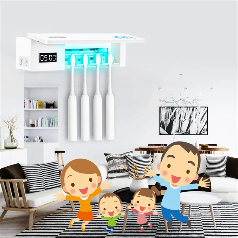 BEST SELLER Wall Mounted Toothbrush Sanitizer Case Bathroom Toothbrush UV Holder for Ladies Men Baby Kids Famil