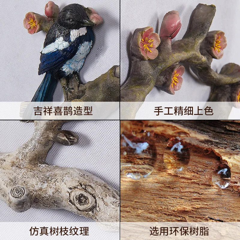 Resin Enjoy the plum shoots crafts robe hooks bathroom wall hanging decoration clothes handbag key